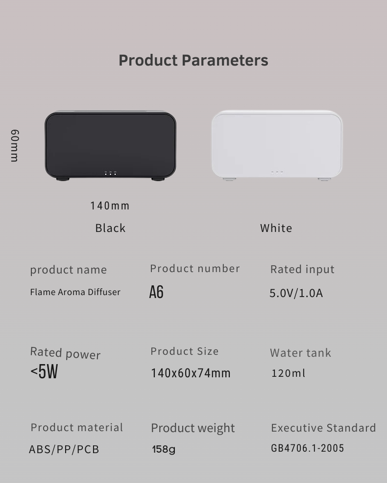 Minimalist Air Humidifier with Flame Imitation, with aromatherapy and LED lighting